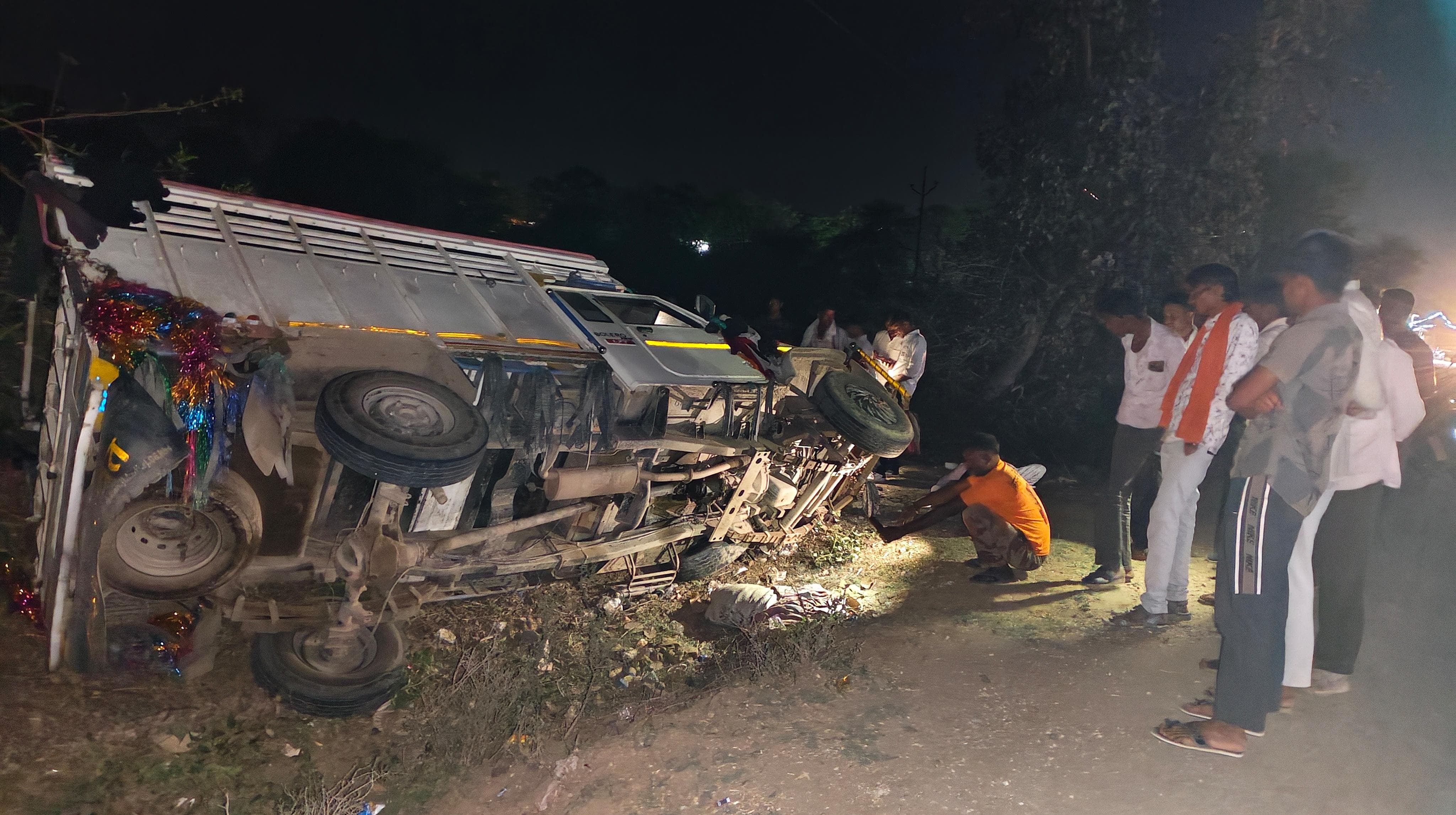गाय को बचाने के प्रयास में पिकअप पलटी